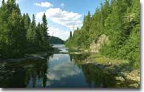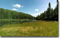 | Un point de vue un peu au nord de la passerelle surplombant le lac La Haie. |