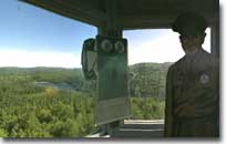 | De l'intérieur de sa tour le garde-feu veille au grain. |