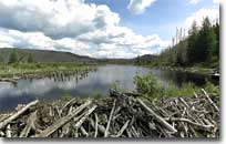| Le lac à Poux situé au bord de la route 60, à mi-chemin entre l'accueil Thomas-Fortin et le Château-Beaumont. |