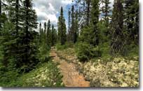 | Feu de forêt récent (1999?) sur la route 60 dans les secteur menant au Château Beaumont. Au loin, on aperçoit le Lac Sainte-Anne du Nord, 200 degrés. (594K) |